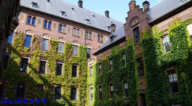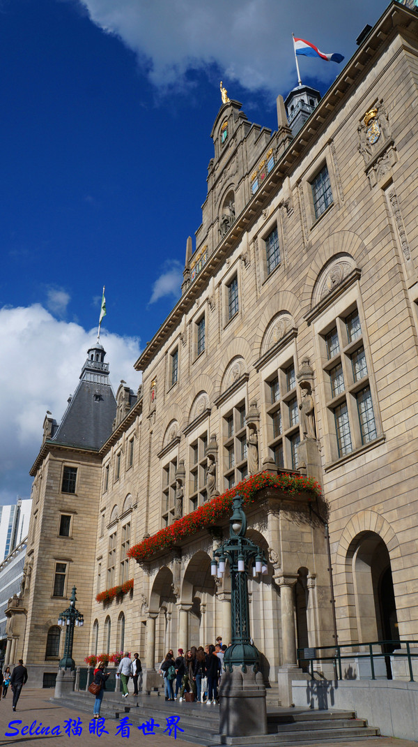 一路穿行,经过邮局就来到了市政厅。这可能是鹿特丹最有古典气息的建筑了,鲜花的点缀让这里少了一分严肃,多了一丝轻松的氛围。走进市政厅大楼,像突然步入了中世纪的教堂,一侧是接待处,另一侧的楼梯通往办公室。穿大堂而过,后面是绿意盎然、幽静的后花园。这里仿佛不是政府的办公场所,而是一座小庄园。风轻轻吹过,贴服在墙上的爬山虎掀起了一片叶子的波浪,真想就这样坐在白色长椅上,静静的聆听花园里的声音。