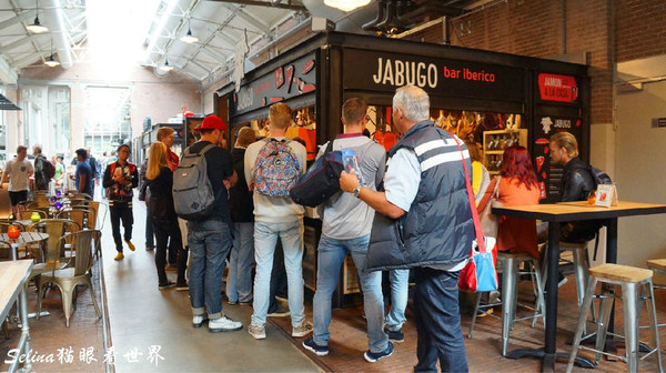 10000平米的空间,大小相当于一个足球场。市场里面摆满了各种摊位,面包、甜点、奶制品、各类奶酪、火腿、腊肉、新鲜的海鲜、水果蔬菜、时令产品、美丽的鲜花和种子,商品琳琅满目,应有尽有!惊喜的看到还有前一天晚餐的Las Palmas餐厅的摊位哦,可见他的受欢迎程度!踏上摊铺顶上的咖啡厅,俯视这个浮华的世界,居住在附近的居民、上货摆摊的店主、还有更多慕名而来的游人,往来穿梭,好不热闹……