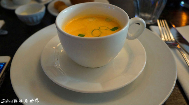 午餐时间到!接连不断的豪华大餐,终于穿插了一次稍有些“冷”的午餐。鹿特丹Rodin餐厅,说这里冷,不仅是因为在这里吃了不少鲜肉冷盘,还因为餐厅的主色调。门口的大红色矮柜和长条桌椅与门内的黑冷色调形成了鲜明的对比。细看不难发现,各个角落都散布着低调奢华,墙上的艺术照、架子上成排摆着的上世纪的回忆……最让人感到贴心的是餐厅专为孩子准备的一角,小桌椅、玩具炉子和炊具!而让我最爱的,莫过于这里的热巧克力和鲜味十足的龙虾汤。