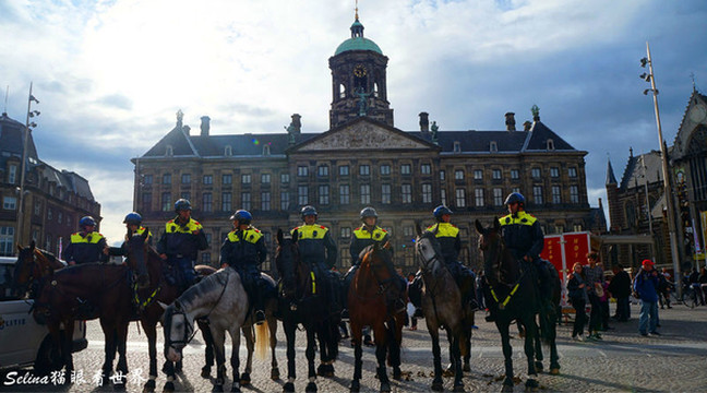 结束了喜力体验之后,在运河游船晚餐之前,我们有3个小时的自由活动时间。站在阿姆斯特丹中心的水坝广场,凝望这17世纪以来古典而宏伟的建筑。由13659根木桩支撑起的巴洛克式建筑,早在1808年法国占领荷兰时,曾被拿破仑选作他的住所,而原本的市政厅也因此改名为现在的荷兰王宫(Koninklijk Paleis),虽然女王办公的场所实际是在海牙,但是这里仍是荷兰王室常用的三大宫殿之一,作为接待外宾、颁授嘉奖以及官方典礼等活动的场所。紧贴王宫的则是一座哥特式建筑风格的新教堂。