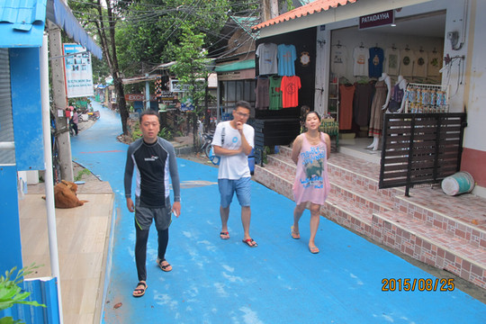 沿着这条路上去就是他酒店的后边,正面就是面朝大海,很多到这个酒店的人都是坐长尾船到海边这么进来的。