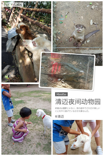 本来我最开始的计划是在清迈好好发呆几天,但是查了下攻略这里的寺庙太多,而小孩子进寺庙其实不是很好,因此我们就准备了一天半的行程,第一天中午到酒店后休整一下,安排了晚上的清迈夜间动物园给孩子们。这个是在某宝上定的169一位,3岁孩子不用买票,导游大姐可以讲中文,态度特好,服务特到位,我儿子都不拉着我了,一路都跟着导游阿姨走,阿姨给讲解,到了动物园阿姨还自掏腰包给买了很多喂动物的吃的,门口有长颈鹿,孩子们一下就疯狂了。然后导游跑去门口买票再折返回来接我们。