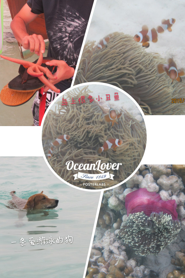下午退潮的时候,就在酒店门口有很多礁石,有很多小丑鱼就在礁石的边边上,水大概到膝盖上面一点点的位置,我们就出来四处看和拍照,酒店里的狗狗也爱游泳跟着我们一边游一边抢我手里拿的喂鱼用的面包。小丑鱼特别多,难怪很多人说这里也叫小丑鱼天堂呢。