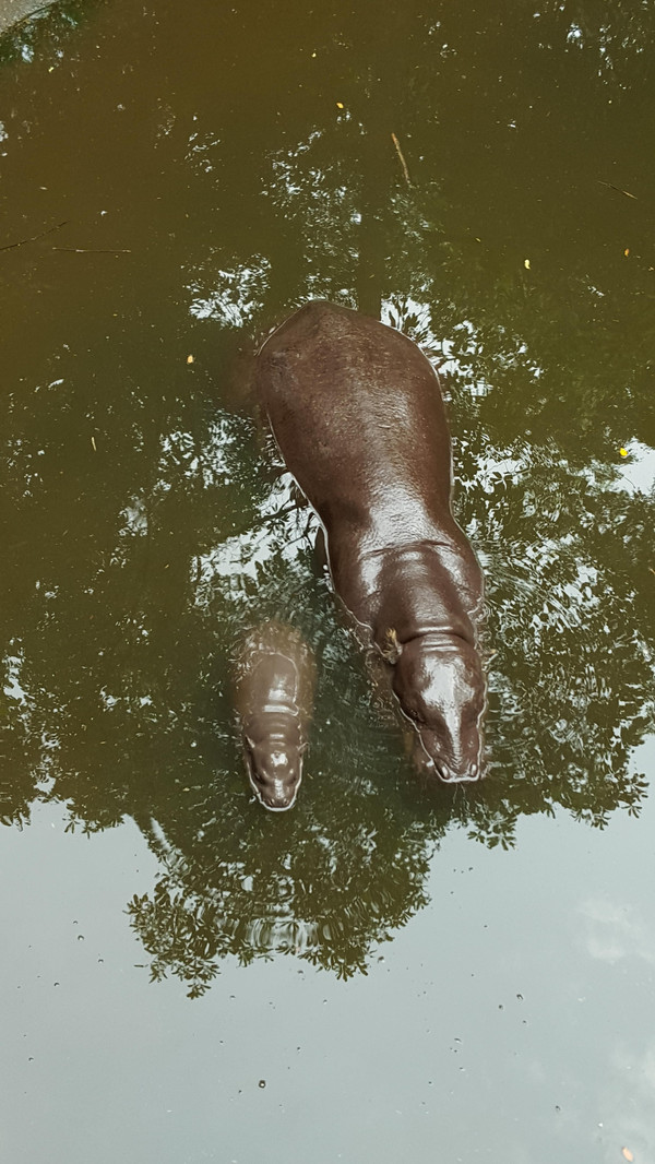 这是大河马,它的亮点就是左边的小河马儿子。我们在动物园很少能见到这么迷你的河马哈哈。