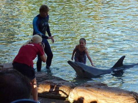 和儿童亲密接触的海豚