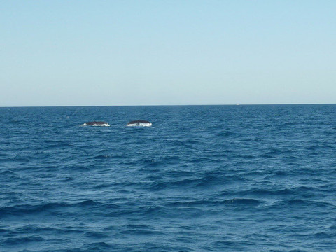 虽然这天看到了五六对鲸鱼,但都在很远的距离,而且没有跳出水面,只能看到鲸鱼的背脊和尾巴