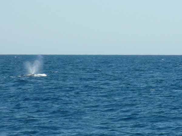 和海豚不同,鲸鱼始终离游船很远,要找到鲸鱼的踪迹就要发现海面上鲸鱼喷出的PUFF