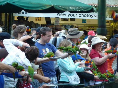 CURRUMBIN动物园的特色项目,喂食彩虹鹦鹉