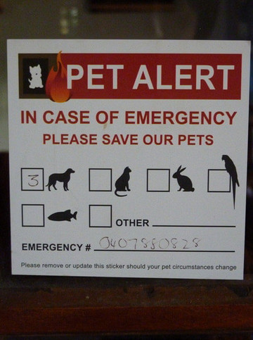 住家门上贴的警示,内容是如果有火灾,请救救屋内的宠物