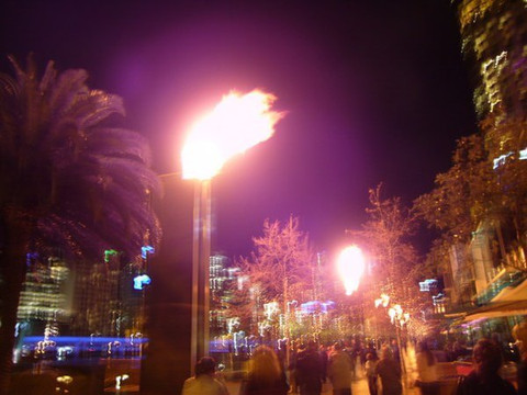 喷火表演时间到,这是最后的八根火柱齐齐喷火,蔚为壮观