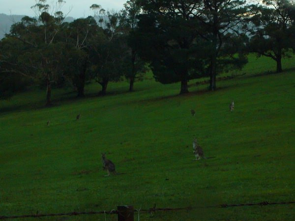 偶尔还能看到保护区里的动物,这是一天回家的路上看到正外出觅食的袋鼠群