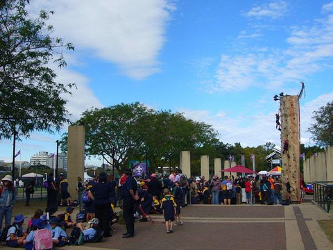 走着走着,迎面而来一大群童子军,原来正好碰上庆祝童子军成立一百周年纪念