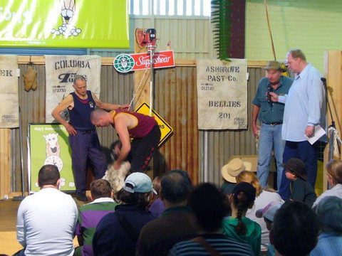 一分钟左右羊毛就剪好了,铺展开来一大片,而羊就成了秃子