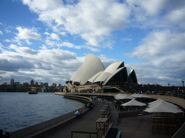 下午天气阴沉,悉尼歌剧院也如预料中的近看不如远瞻