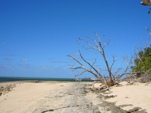 岛的另一面风很大,沙子吹在身上非常疼,有点走在沙漠中的感觉
