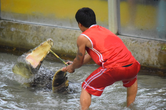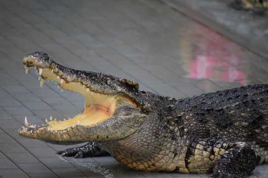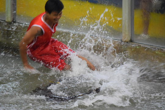 C院内小河养的鳄鱼?没有遮拦!是是,是很霸气。但我写到这好像明白为什么