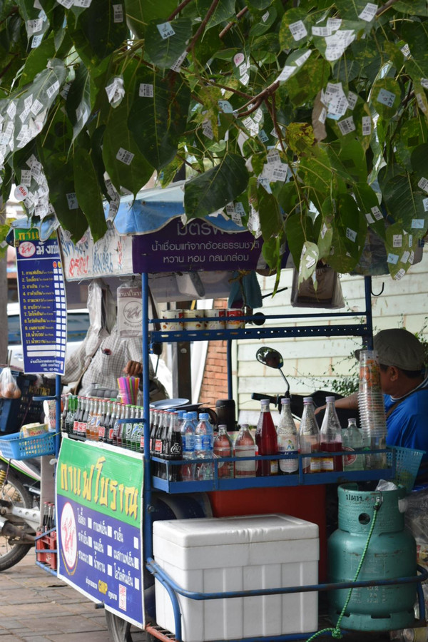 干了瓶红牛~出发(泰国的小玻璃瓶红牛很漂亮也很赞,每天都靠它提神。不然每天的密集行程和自己另行起早晚归真是挺不住)