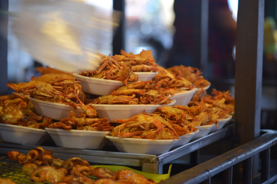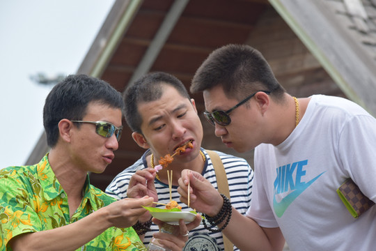 1四合镇水乡—吃小吃最省事集中的地方。鳄鱼肉串、炸螃蟹、糯米饭、蚵仔煎等等很多小吃美食。 当然还有特色水果