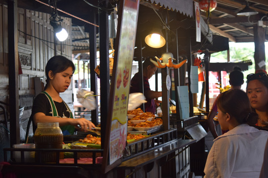 吃了几次排挡,发现每个菜大概80-120泰铢左右。不贵,但量也不多