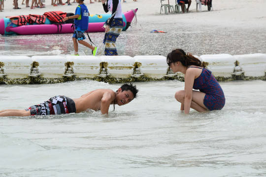 5、水上活动—需要留意海面情况,如等会有致命的暗流,不适合进行水上活动。另外,当 海滩上插有红色旗帜时,表示海面状况不佳,游客不应进行水上活动。即使海面状况良好,游客 也应确定有救生员在场才下水。