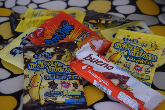 给孩子买的可爱糖果,5泰铢一袋。1元人民币俺会过日子吧。(巧克力真不是)
