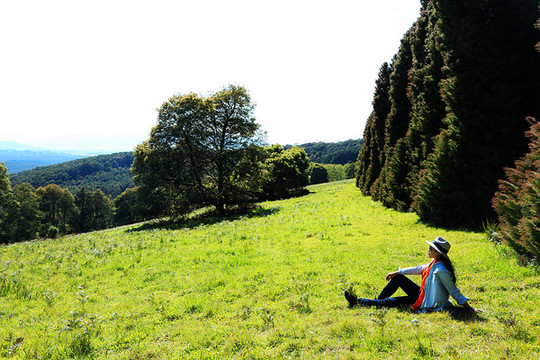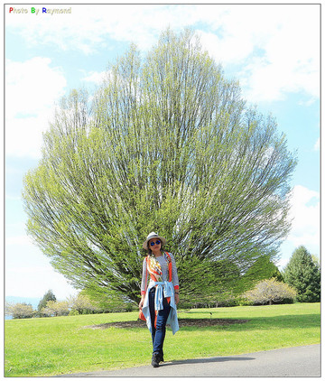 草坡上的这棵树引起了我们的注意,于是新一轮摆拍开始。话说今天这副装扮够乡村,倒是应景。