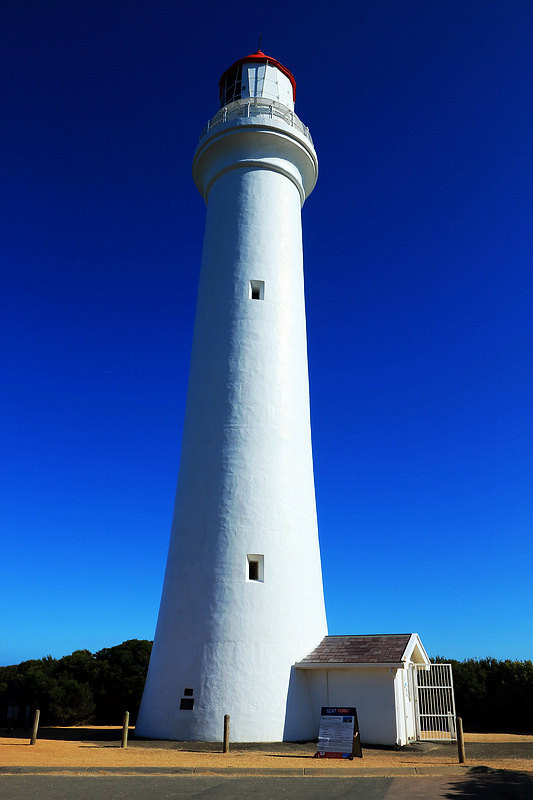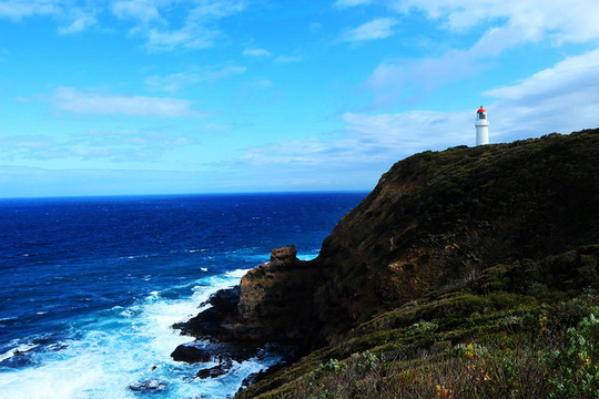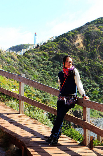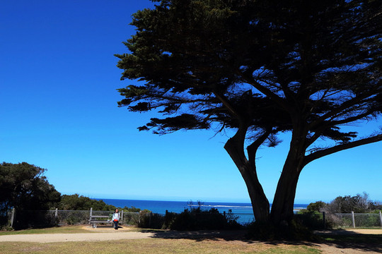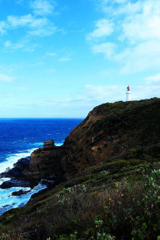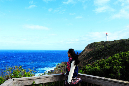 在一个不知名的小沙滩消磨了好久,接下来的路程精简了许多。几个知名小镇都没有停留,看到某处有个“castle lookout”,便停下车来。后来查地图才知道这个地方叫“Aireys Inlet”,这里除了有个叫eagle的礁石,还有一座叫“Split point”的灯塔。相比之后去过的几座灯塔,这座可以离得很近。