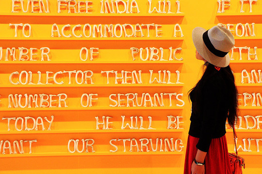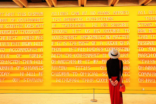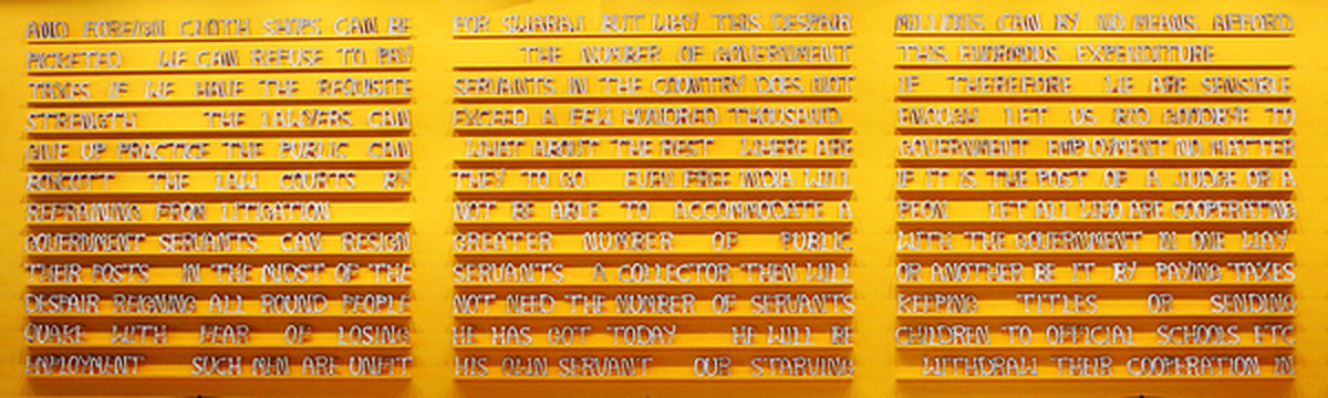 一进门就是这面用字母雕塑排列的甘地演讲。