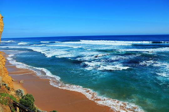 Hills小镇买了三明治补充能量,继续向前,经过普林斯顿之后就来到了大洋路的精华地段。最先到达的是Gibson steps。这里有栈道可以下到沙滩,近距离观看十二门徒中的两座。可能是潮汐的缘故,浪太大,为保证安全栈道已经封闭。