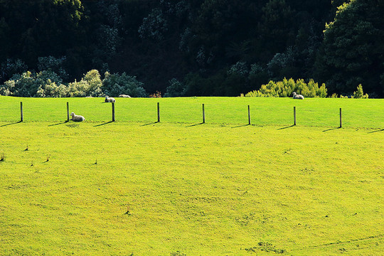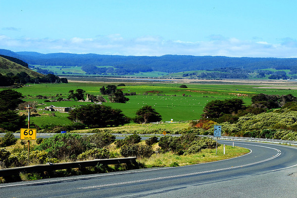 Bay开始渐渐离开海岸,道路两边的草地,树木,风情各异,自成美景。