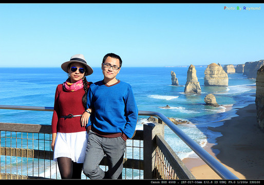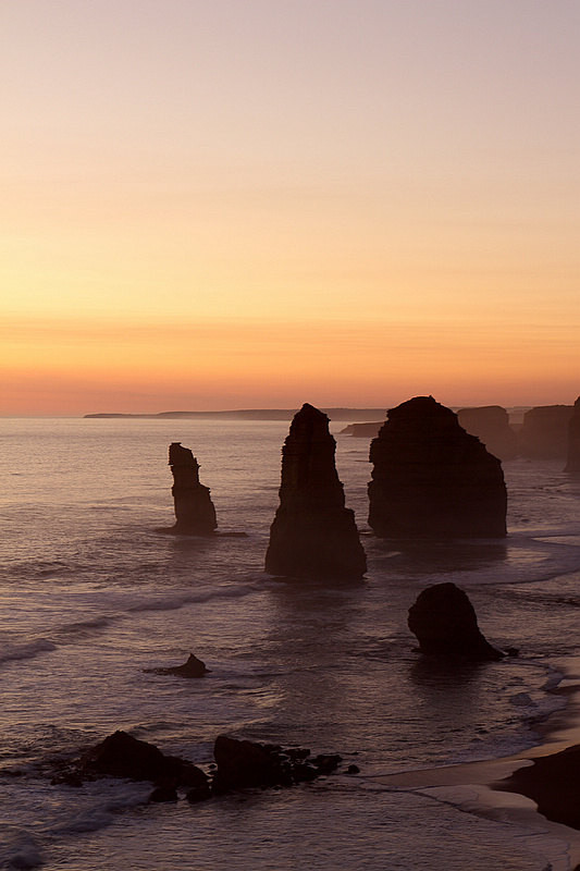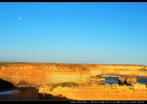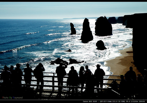终于来到大洋路的标志景点,可是傍晚的光线在这个角度完全是逆光,几块大礁石离开了阳光,显得灰突突的并不漂亮。