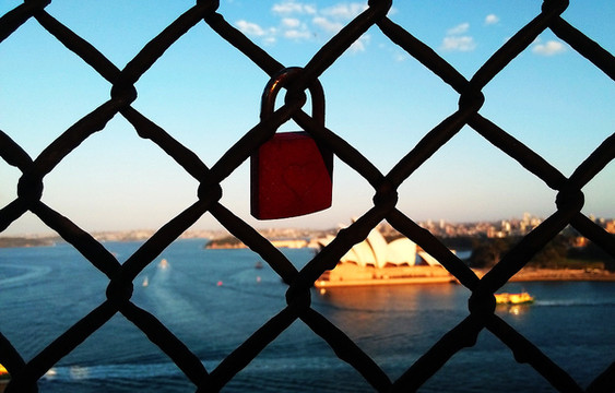 忽然在围栏上发现了这枚爱心锁,看来关于爱情锁的传说遍布世界。