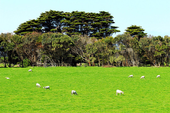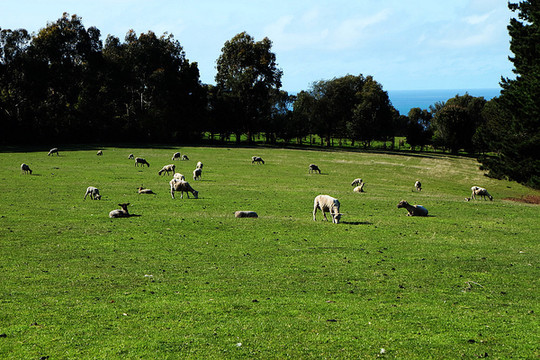 第二天一早就租车向大洋路迈进。第一次靠左行驶,从最初的忐忑到适应后的放松,改变习惯并没有那么可怕。从墨尔本到吉朗的一段基本都是高速,车流不算少,但是车速并不慢。道路两边是草地,还见到了一片金灿灿的油菜花田,只是相比青海有层次的辽阔花海,这里的平坦绵延少了点气势。