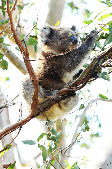第三次看到的考拉就蹲坐在两米不到的树枝上,近得仿佛触手可及,它也在吃树叶,丝毫不怕人。引得游客围着它不停拍照。