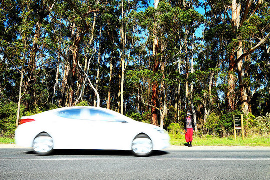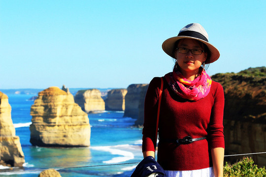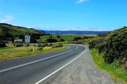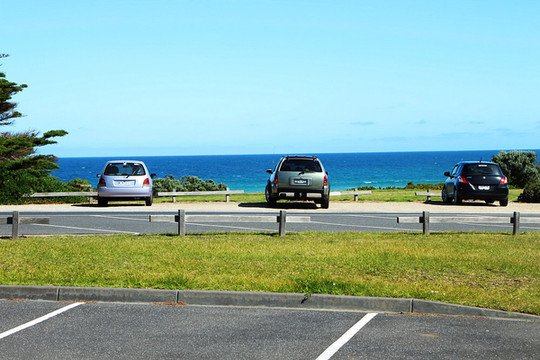 了解这些常识还有一段小插曲。第一天在大洋路上开车,我们一看到这个黄牌,就按照它的速度驾驶。开着开着,发现后面跟了大概十来辆车,蚂蚁还得意地说:老婆,我们是车队之首啊。就这样,车队默默开了十来公里,我们来到鹰岩观景台的停车场。刚停下车,身边的车位也开进来一辆,司机是位中年阿姨,她打着手势让我们开车窗。疑惑之际她解释说:你们开得太慢了,后面十多辆车都在等。我知道你们是游客想慢慢欣赏风景,速度慢也没什么不对,不过我们很多人都是刚下班赶着回家呢。“啊,不会吧,我们是按限速来的啊。” 再一打听才知道黄色牌子是建议速度。最后她说:如果你们就是想开慢一点,可以在临时停车道暂停一下,让后面的车先过去,这样大家会更爱你。原来,那些被我们带领的十几辆车是因为不能超车而忍气吞声地跟随,让人感动的是居然没有一辆车按喇叭表示不满,以至于我们都没意识到自己开得多慢。司机阿姨说完祝我们玩得愉快,就开走了。还有一次是个出租车司机,在我们停车之后开到我们旁边说:你不该开远光灯,近光灯就够了。然后用一种“收好不谢我的名字叫雷锋”的酷帅驶离。忍不住感叹澳洲人民真是又谦逊又热情呢。