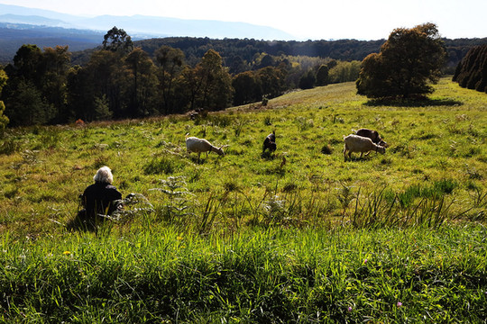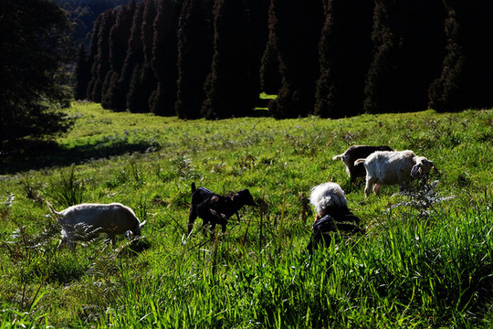 去奥特威的一路没有遇到一家饭店,幸好带了干粮,把车停在路边,看着草坡羊群解决午饭。