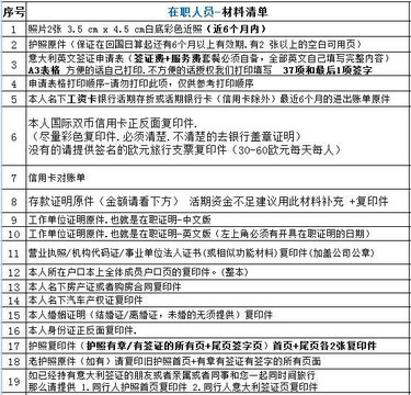 意大利签证材料明细: