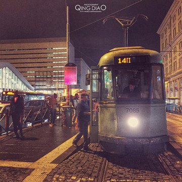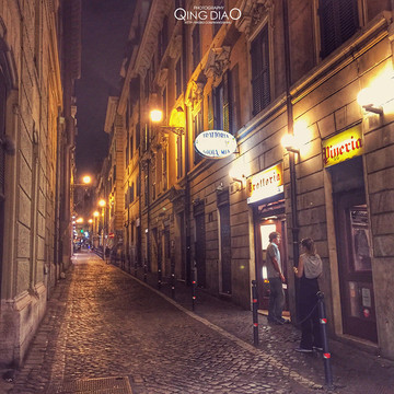 在西班牙广场逛了逛已经天黑了,然后在一个小巷子找到一家不错的餐厅,在里面坐了好久,吃完饭后游荡在罗马的街头,这样的复古电车很有感觉。