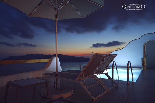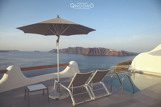 圣托里尼----Delfini Villas,淡季价格150-400欧,旺季价格250-800欧,价格都包含早餐,优点:风景好,打开门就是爱琴海。缺点:没有发现。