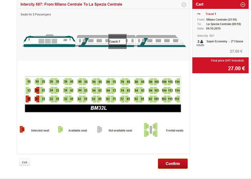 意铁火车都是面对面坐的,不像国内高铁背对背,这点需要注意,绿色都是可以选择的位置。