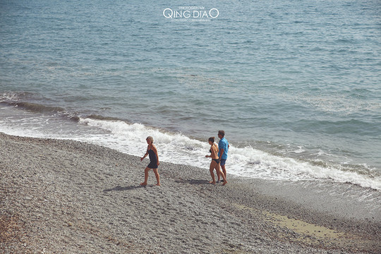 相对于其它地方的沙滩来说,这里的沙又黑又粗,赤脚踩在上面并不是很理想。