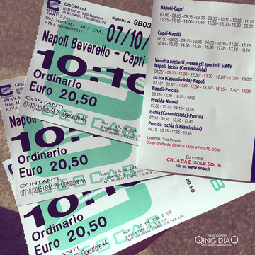 到达那不勒斯火车站后可以乘地铁到Toledo站然后步行到Napoli Beverello码头约15分钟。码头到卡普里票价20.5欧,时刻表可以见图上。