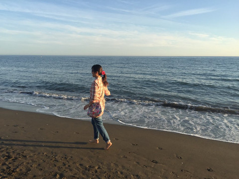 地中海很温和,平静的海面基本看不到大浪。沙滩的沙子是深灰色的,虽不细软,也不扎脚。夕阳西下的海边漫步,很爽。