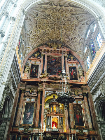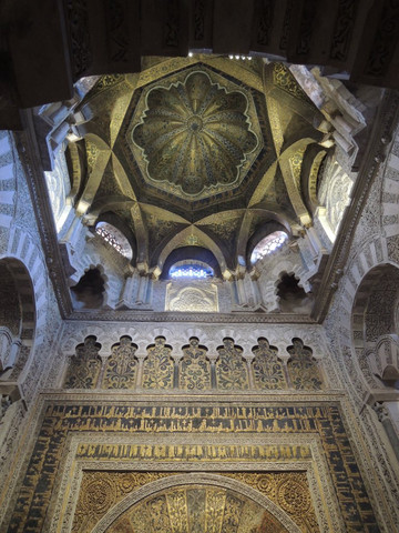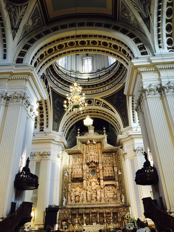 还有一个本来只看外观的景点——。但是由于时间充裕,好激动地去买票参观了。门票8欧,实在物超所值,太有特色!这里本来是清真寺,后来改建成教堂,成为教堂与清真寺二合一的形式。漂亮的大理石柱子,不停重复的圆形门洞,闪闪发光的银器饰品,都让我瞠目结舌,我觉得比最后看到的圣家族大教堂还要赞。