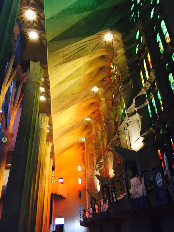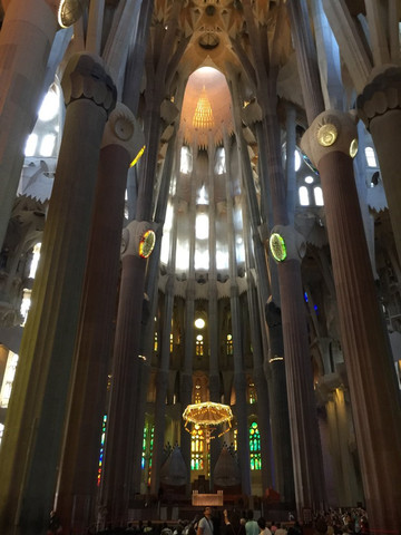 然后去参观了高迪的百年烂尾楼——圣家族大教堂。因为之前资料图片看了太多,去看本尊时已没了那种新鲜感。圣家族的亮点在与彩色玻璃窗和各处细节都来自于自然元素,用人物形象和文字展现了圣经的故事。建筑中最难得的就是创意,而高迪无疑是个天才。