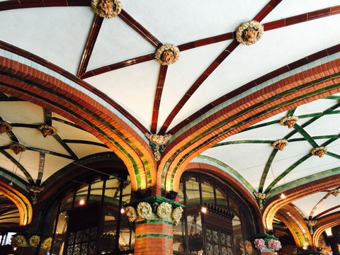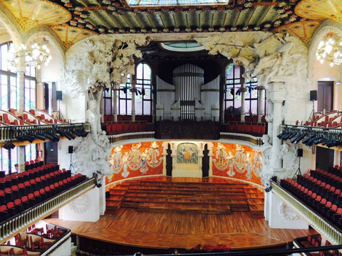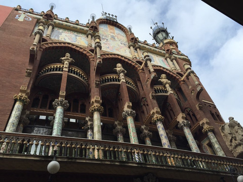 拿出导航,步行去看(palau de la musica catalana)。把miniipad 揣在怀里,警惕地看着周围。有个眼睛发红的黑人看看垃圾桶,又看看我们的包,见我们紧紧捂着,然后默默地走开。吓死冷啊。不多久,精致的建筑就在眼前,嘿嘿,找到了!