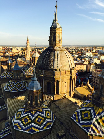 萨拉戈萨的皮拉尔教堂(又叫柱子教堂)有个传说,说圣母玛利亚曾经出现在教堂的一个柱子上。后来教堂里就有好多人去排队亲那个柱子。虽然也类似国内菩萨显灵的故事,但是二战时期有炮弹掉进教堂,真的没有爆炸,教堂也在战事中也出乎意料地保存完好。也许冥冥之中真的有神灵庇佑吧。这个教堂也挺漂亮的,我喜欢它简单素雅的配色,还听到了大妈唱诗,跟天籁似的,老好听了。