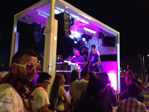 入夜后,在人山人海中走向我们的大巴车。比较好玩的是出现了这辆一边开一边唱摇滚的车,团友们都疯了,群魔乱舞追在车后面,我比较镇定,又要防贼,又要防走丢,还要防踩踏,思路清爽。后来导游跟我们说,车上的人唱的是玛利亚万岁,然后看到我们挥手啊,疯啊,又喊了,亚洲人万岁!这包容的心态我还是挺欣赏的,疯狂的本质也算是西班牙民族特色吧。