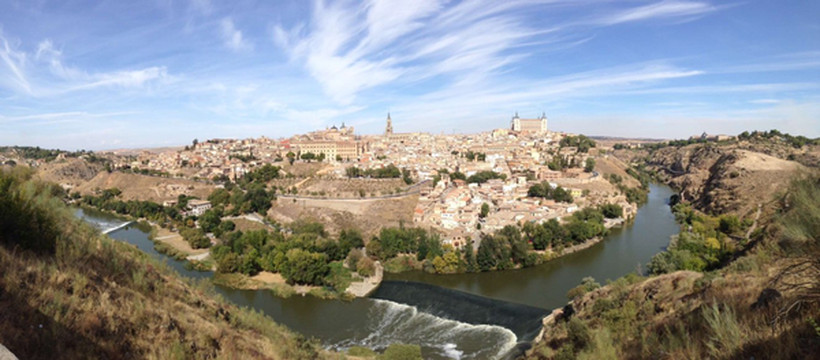 第七天来到中世纪古城-托莱多。小城在一座小山坡上,外围由一条大河环绕,有点像北京的护城河,易守难攻。我们坐车到了小城对面的山脚下,坐扶梯到山顶。正好可以看到整座小城。风景比较一般,但是有地理优势,并保持百年不变,也算是不易。