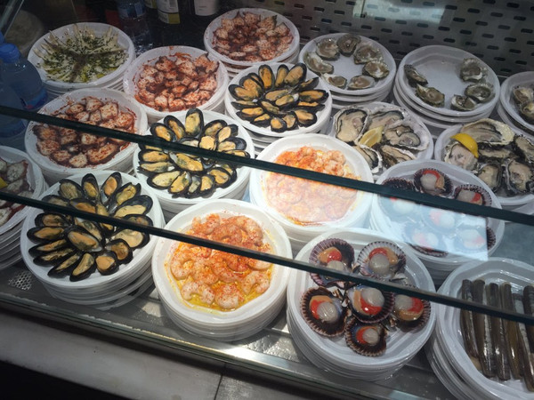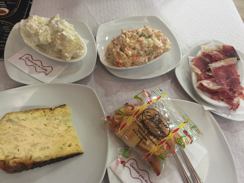带着激动的心情来到,虽没有入内,也被这雄伟的外观深深吸引。大教堂周围有很多餐厅,我和团友随意进了一家。吃到了西班牙人最爱的tapas,也就是点心饭。我以为tapas都是放在面包上的小菜,其实很多餐厅都会直接给你菜,再附送一包包的小饼干和面包。这一段很丰盛,4个人才吃了50欧元哦。